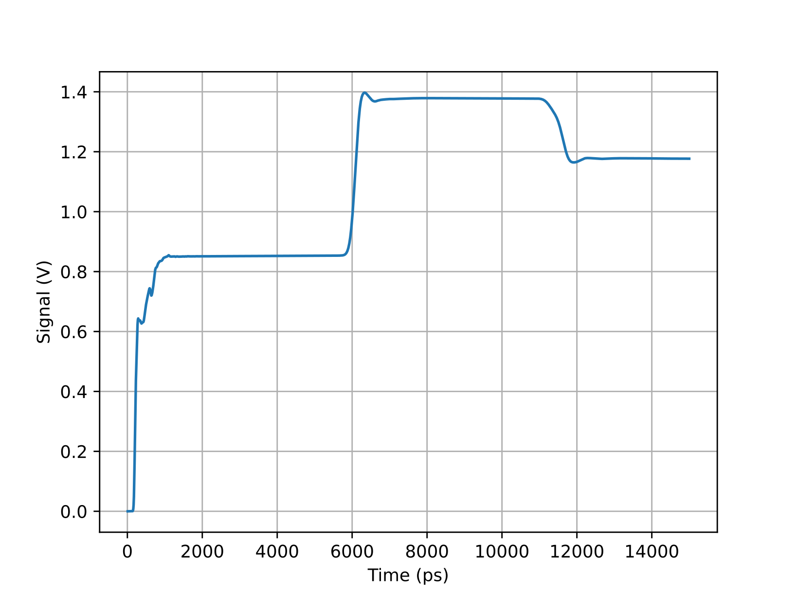 Here’s an example of the resulting waveform, showing a 214 ps rise time.