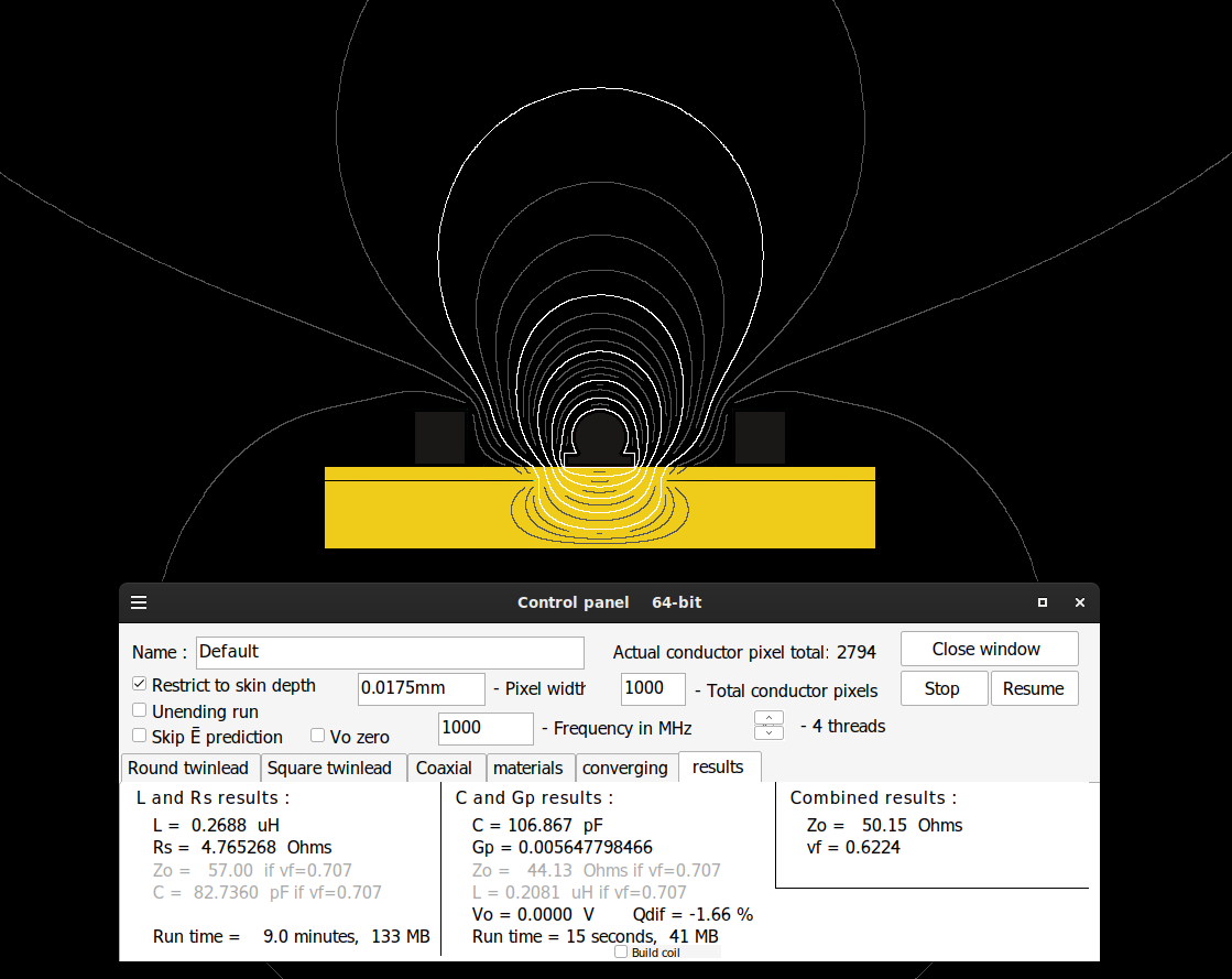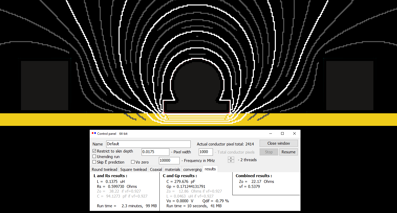 Comparing to the IPC 2141 estimation of 53.6 \(\Omega\) we get an acceptable discrepancy of 0.15 \( \Omega \).